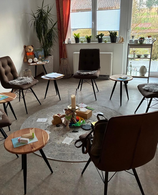 Durch die Hospizarbeit haben wir eine geschärfte Wahrnehmung und Sensibilität für die Bedürfnisse von Trauernden. Die kühle Atmosphäre in den weißen Räumen sollte durch Sitzmöbel und Kunstwerke in ansprechenden Farben verbessert werden. Die Sessel in den Aufbahrungsräumen sollen dazu beitragen, dass Personen, denen langes Stehen Mühe bereitet, sich problemlos auch länger dort aufhalten können.